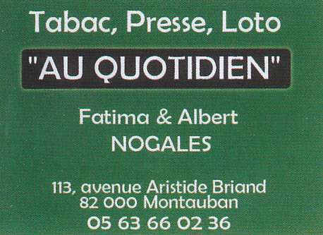 « AU QUOTIDIEN » Adresse postale : 113, avenue Aristide Briand 82000 Montauban Numéro de téléphone : 05 63 66 02 36